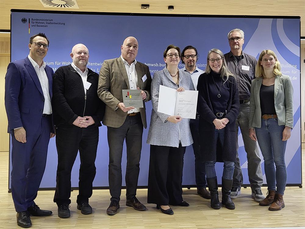 Münsters Immobiliendezernent Arno Minas hat am Mittwoch, 20. November, in Berlin die Förderurkunde für die Sanierung und Umnutzung des ehemaligen Offizierskasinos im York-Quartier von Bundesbauministerin Klara Geywitz entgegengenommen. Das Bundesministerium für Wohnen, Stadtentwicklung und Bauwesen fördert die Entwicklung des Gebäudes als „herausragendes Projekt des Städtebaus“ mit insgesamt fünf Millionen Euro. Die Stadt Münster hatte sich in diesem Jahr mit der Idee, den ehemaligen Militärstandort in einen lebendigen Demokratie- und Begegnungsort mit und für Bürger:innen zu verwandeln, im bundesweiten Förderprogramm Nationale Projekte des Städtebaus durchgesetzt.